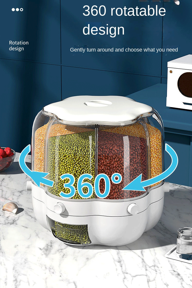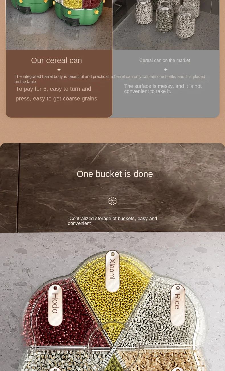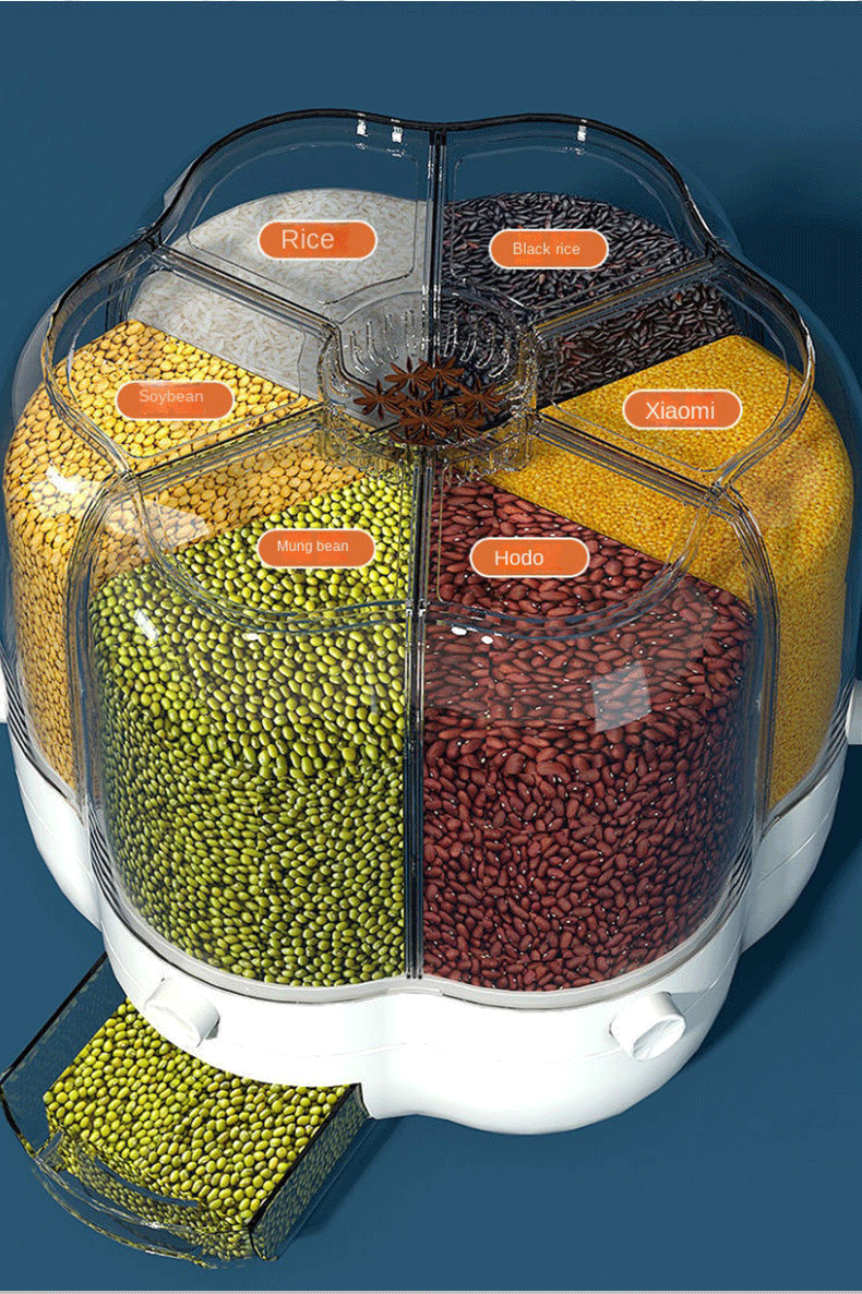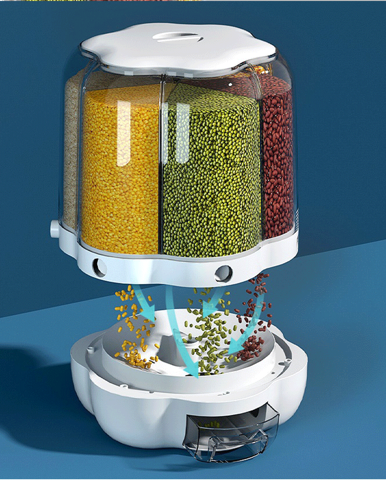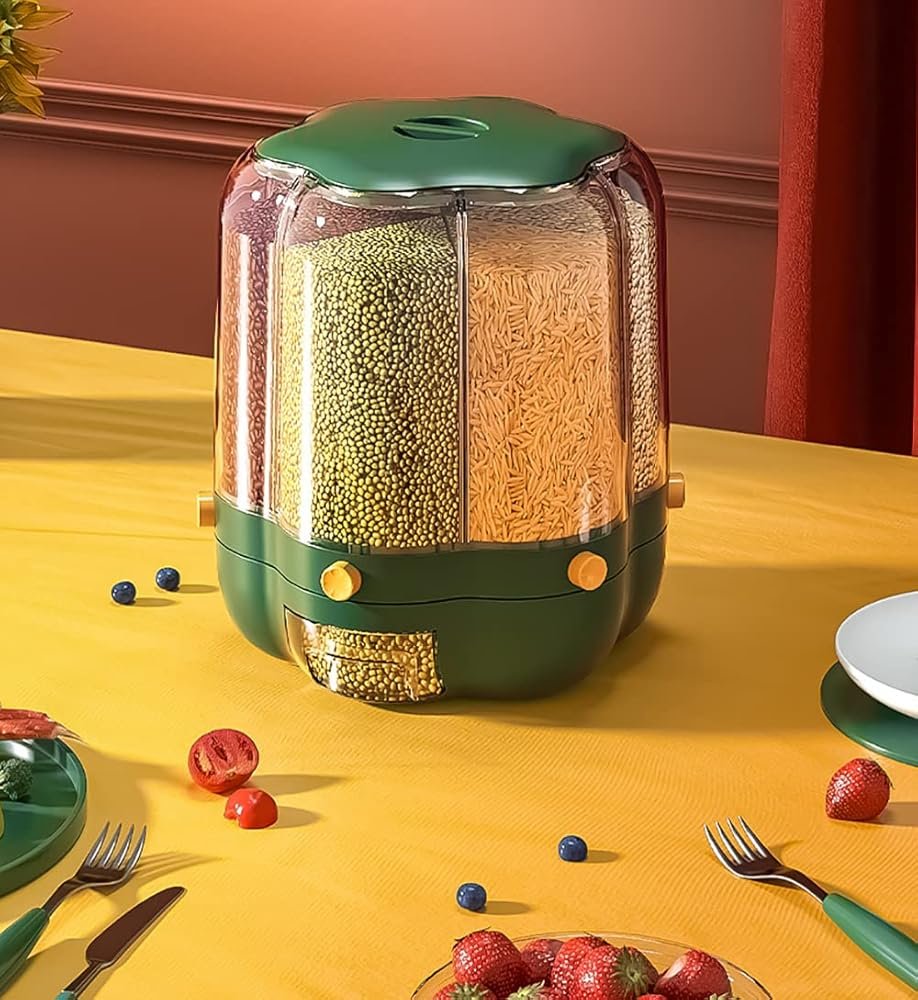 موزّع حبوب ذكي بـ 6 خانات – تنظيم مثالي للمطبخ 🍚🌾