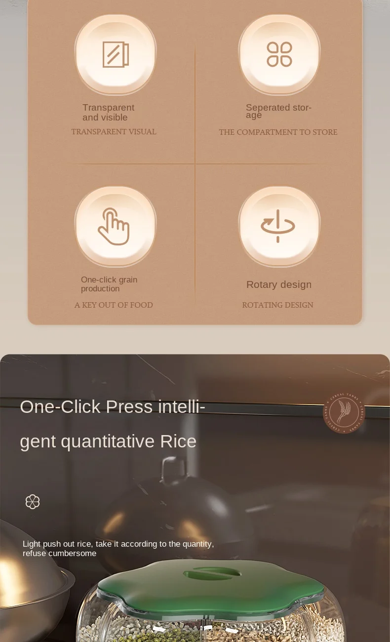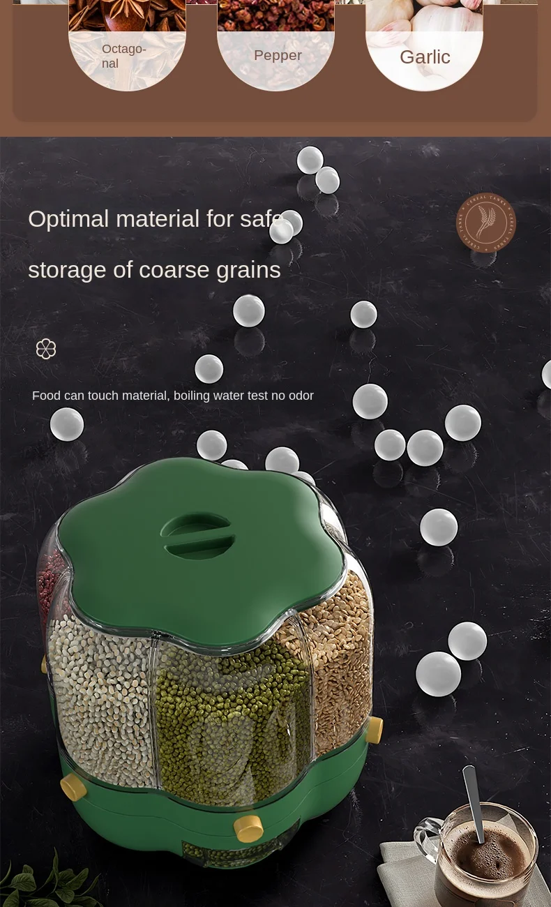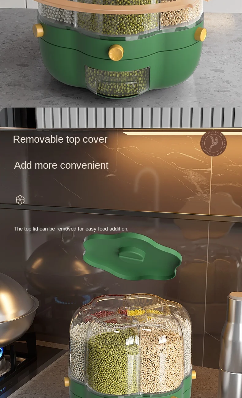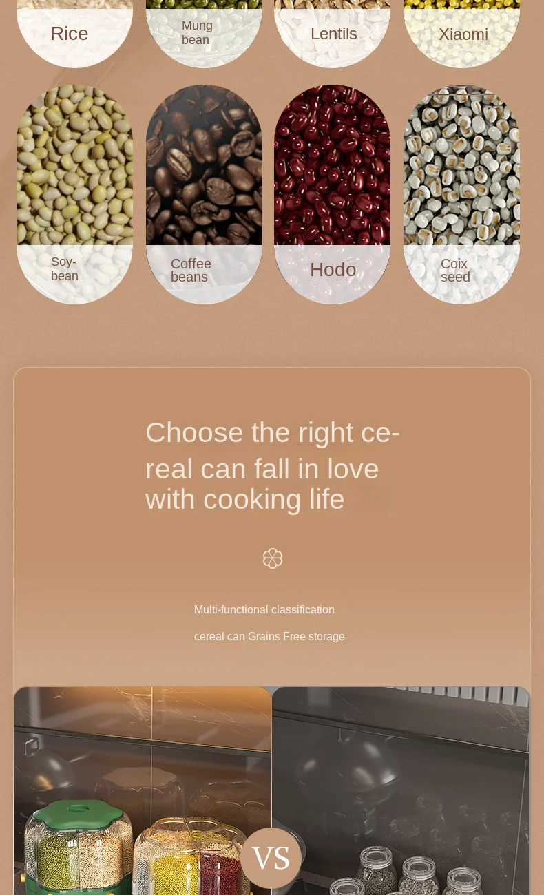 موزّع حبوب ذكي بـ 6 خانات – تنظيم مثالي للمطبخ 🍚🌾
